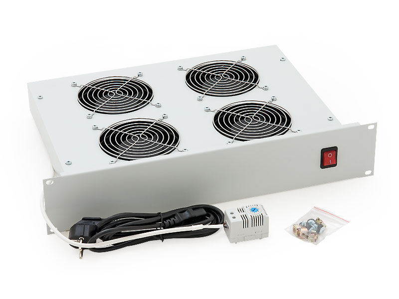 Sieťové prvky pasívne19″ horiz.vent.j.4xVent.-220V/92W termost.2U sivá