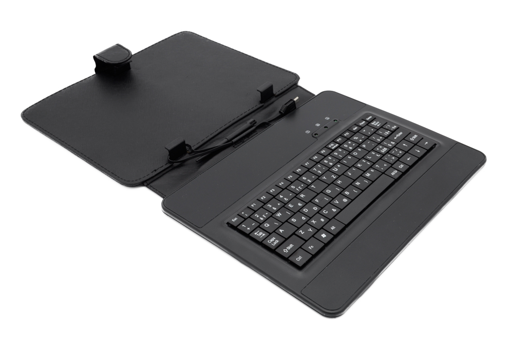 Koženkové univerzálne púzdro pre tablety 9,7″ so vstavanou USB klávesnicou a konektorom microUSB.