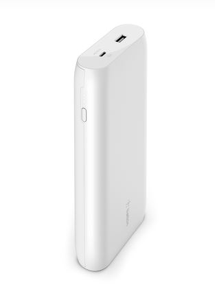 Energetická banka s výkonom 20 000 mAh poskytuje ďalších 28 hodín výdrže batérie na plné nabitie MacBooku USB-C.