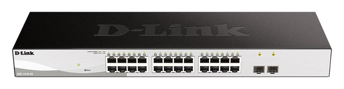 D-Link DGS-1210-26 je výkonný 26-portový Gigabit Ehernet Smart Managed switch bez vetrákov, vhodný pre prístupové Enterprise siete a pre SMB. Je osadený 24 portami 10/100/1000M RJ-45 a dvoma 100/1000M SFP slotmi s podporou 100M SFP a Gigabit SFP transceiverov. Správa prepínača je z intuitívneho webového rozhrania alebo pomocou SNMP príkazov. K dispozícii je aj bezplatná utilita D-Link Network Assistant (DNA) a centrálna NMS plaforma D-View7. Kompaktná sada Telnet CLI príkazov umožňuje základné nastavenie prepínača (nastavenie IP adresy, hesla, reset, reboot, ping, upgrade FW, nahranie/zálohovanie konfigurácie, show, debug).