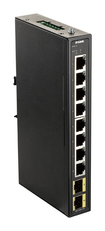D-Link DIS-100G-10S je priemyselný 10-portový Gigabit Ethernet switch bez manažmentu, osadený 8 portami 10/100/1000M RJ-45 a dvoma Gigabit SFP slotmi pre optický uplink. Prepínač je určený na montáž na DIN lištu. Je v robustnom kovovom prevedení bez ventilátora, so stupňom krytia IP40 as rozšíreným rozsahom prevádzkových teplôt -20 °C až +65 °C. Pre napájanie s možnosťou redundancie sú k dispozícii dve svorkovnice 12V-48V DC, voliteľne je možné dokúpiť 230V AC zdroj (napr. D-Link DIS-H30-24). Switch je vhodný pre inštaláciu do klimaticky náročných prostredí, ako sú priemyselné aplikácie, automatizácia, dopravné aplikácie, kamerové systémy, internet vecí (Internet of Things, IoT), múdra mestá (Smart Cities) a pod.