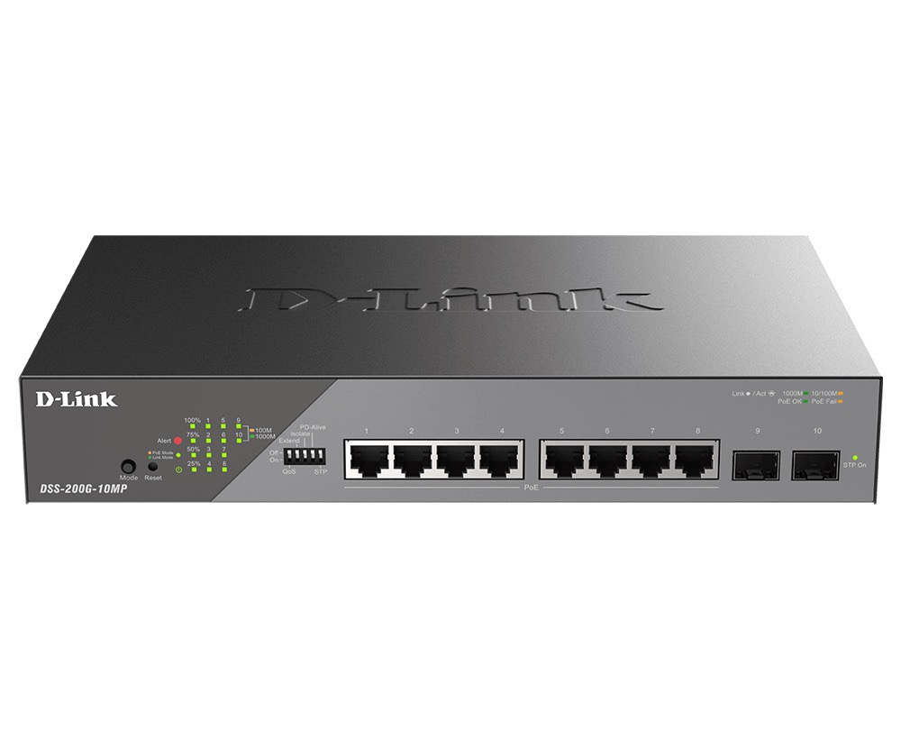 D-Link DSS-200G-10MP/E 10-Port Gigabit Ethernet PoE+ Surveillance Switch