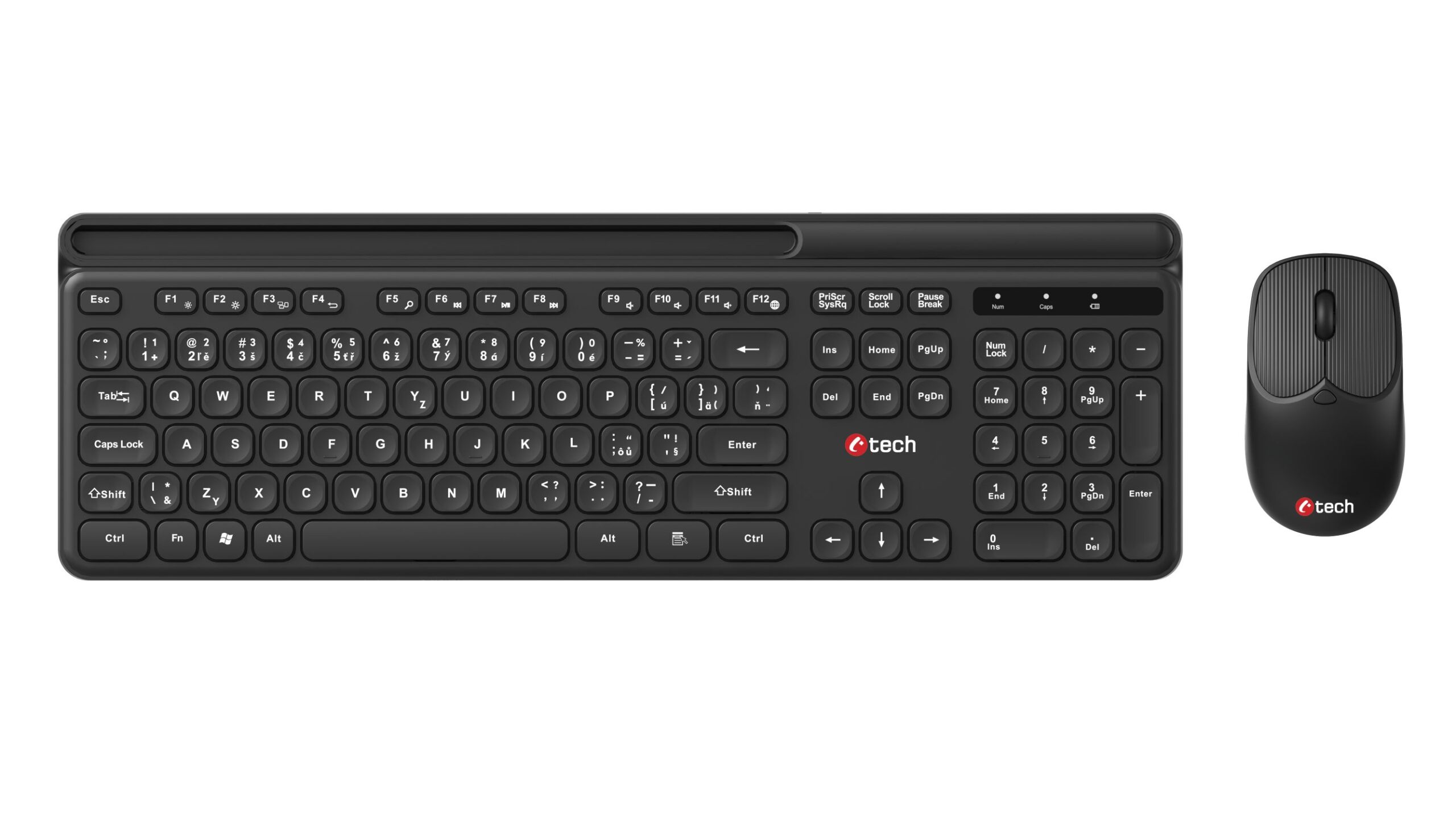 Klávesnice C-TECH Quallis WLKMC-05, bezdrátový combo set s myší, černý, USB, CZ/SK
