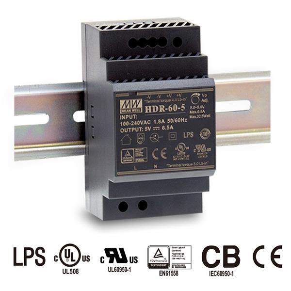 MEANWELL – HDR-60-12 – Priemyselný napájací spínaný zdroj 12V 60W na DIN