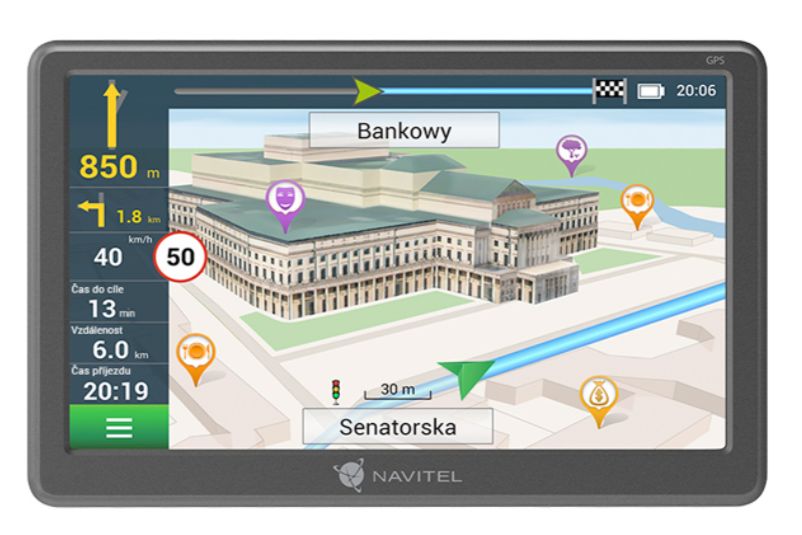NAVITEĽ E707 MAGNETIC má kapacitný multidotykový displej, vďaka ktorému je práca jednoduchšia a pohodlnejšia. Užívateľ môže meniť priblížiť/oddialiť mapu, vytvárať trasy a konfigurovať navigáciu jednoduchým dotykom niekoľkými prstami.