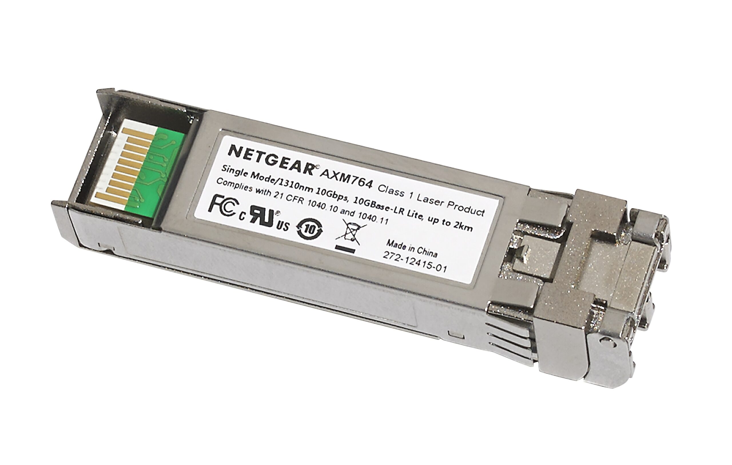 NETGEAR ProSafe 10 Gigabit SFP + transceivery sa zmestili do M5300, M6100, M7100 a séria M7300 štandardným SFP + rozhraniami, ktoré poskytujú hot-swap montáž a demontáž. Vyberte inteligentné prepínače a spínače Plus bude tiež pripojiť 10Gb SFP + vysielača.