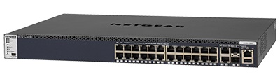 NETGEAR M4300-28G (GSM4328S) – Stackable Managed Switch s 24x1G a 4x10G vrátane 2x10GBASE-T a 2xSFP+ Layer 3 Odkaz na web výrobcu: https://www.netgear.com/business/products/switches/managed/M4300 -28G.aspx#tab-overview
