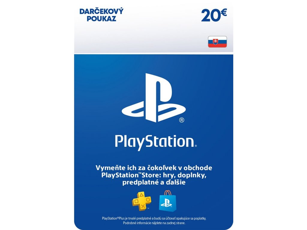 Pridaj si ľahko prostriedky na svoj účet v sieti PlayStation Network aj bez kreditnej karty. Je možné uplatniť na všetky produkty v najväčšej knižnici obsahu pre PlayStation na svete ktorej súčasťou sú – hry, virtuálna mena, doplnky, predplatné a mnoho ďalšieho. Elektronická licencia. Hodnota karty 20 EUR.