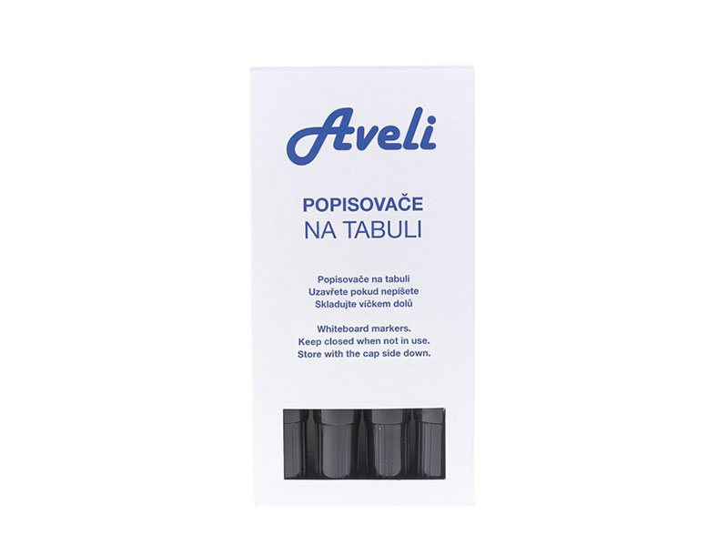 Popisovač pre tabule a flipcharty AVELI. Súprava 4 čiernych popisovačov.