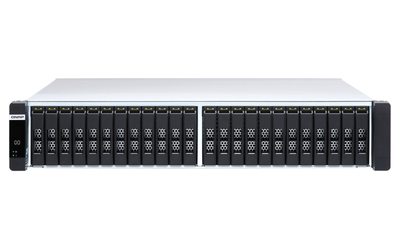 Úložisko NAS ES2486dc Enterprise ZFS je prvé úložisko NAS s vysokou dostupnosťou s poľami typu flash a duálnymi aktívnymi radičmi. S procesorom Intel® Xeon® D-2142IT s 8 jadrami/16 vláknami podporuje ES2486dc až 24 × 2,5” diskov SSD SAS 12 Gb/s a ponúka vynikajúcu priepustnosť vstupov/výstupov. Výkonnosť náhodného zápisu podporuje aj operačný systém QES 2.1.1, ktorý je optimalizovaný pre pole typu all-flash a ktorý je predinštalovaný na zariadení ES2486dc. Systém QES využíva ZFS na podporu správy logických zväzkov; inline blokové odstraňovanie duplicitných dát a inline kompresie znižujú využitie vstupov/výstupov a kapacity diskov SSD, čo významne predlžuje životnosť diskov SSD s lepším pomerom cena-výkon pre všetky polia úložiska s podporou Flash. S takmer neobmedzenými snímkami, nástrojom SnapSync pre ochranu dát a QES spĺňa úložisko ES2486dc požiadavky na nasadenie pre náročné obchodné aplikácie, ako sú kľúčové súborové servery, virtualizačné centrá, VDI, dátové centrá strednej veľkosti, streamovanie videí, úložisko dozoru a efektívne zálohovanie súborov a obnovenie .