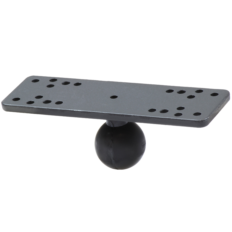 RAM-111B držiak pre sonary a echoloty Lowrance, Humminbird, Fish Finder, Garmin, Eagle atď. S 1,5 “čapom. Obdĺžniková doštička držiaka má rozmery 15,8 x 5 cm a obsahuje rôzne kombinácie převrtaných dier tak aby do nich bolo možné pripevniť veľa rôznych prístrojov vrátane námorných a lodných GPS, sonarov, Echoloty, CB a Ham rádiostaníc, konzol Gimbal atď.