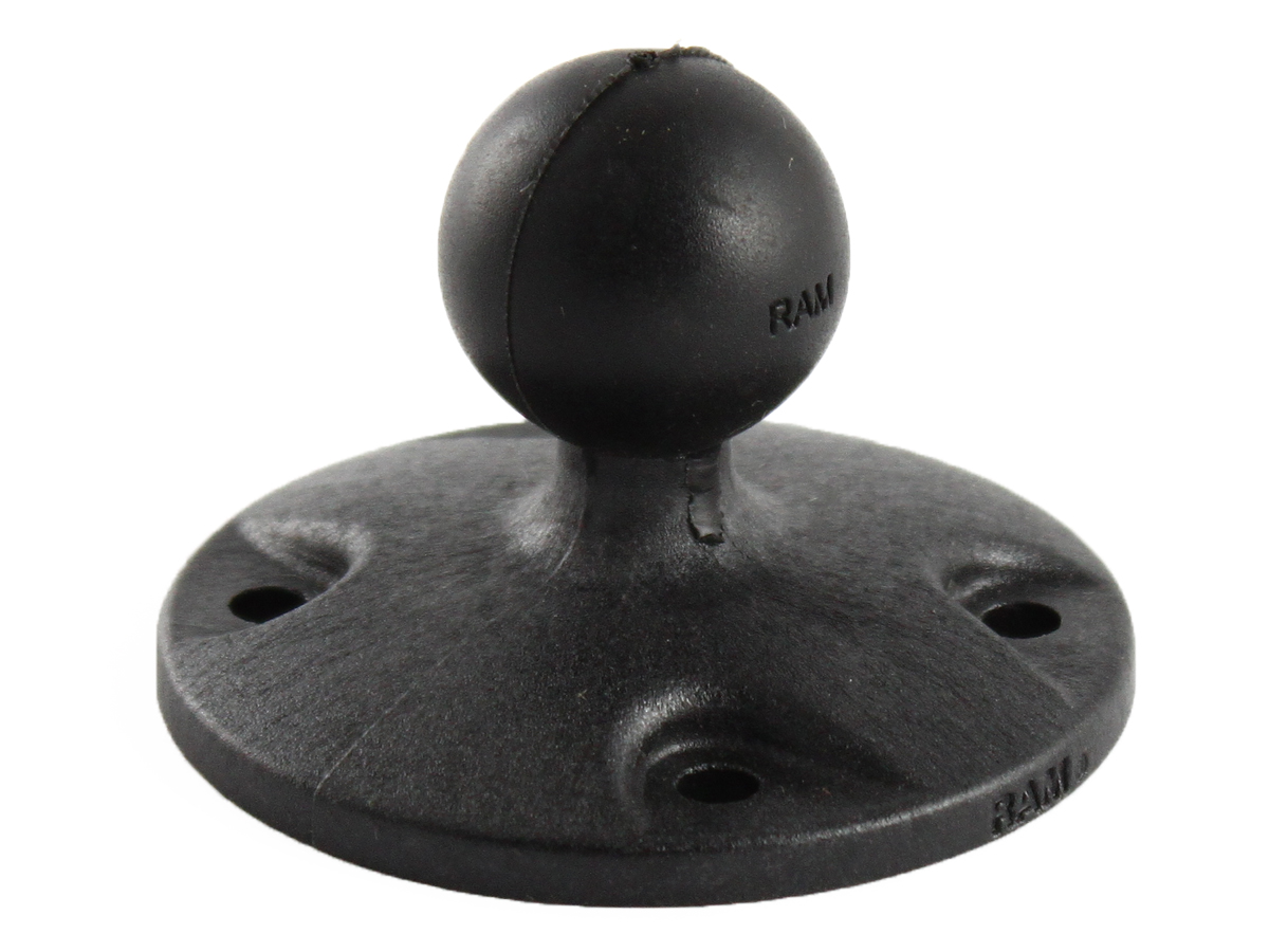 ako úchyt na rovné povrchy s 1″ čapom. Je určený pre pevné nerozoberateľné pripevnenie držiaka na rovnú plochu. Typicky pomocou skrutiek na vhodné miesto palubnej dosky nákladného auta, na palubu lode, board kajaku atď.