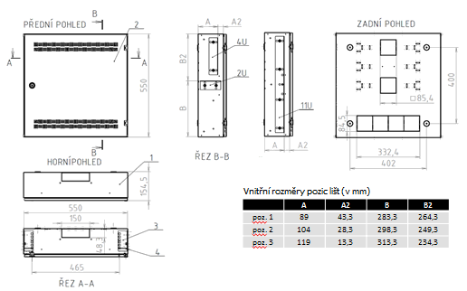 * 2U horizontálne, 4U vertikálne, 11U vertikálne