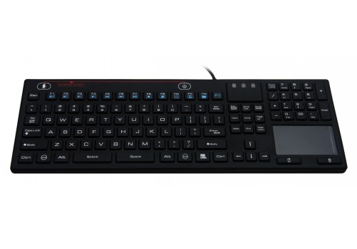 SK314-BL – Priemyselná silikónová antibakteriálne klávesnica s touchpadom podsvietená, CZ, USB, IP68