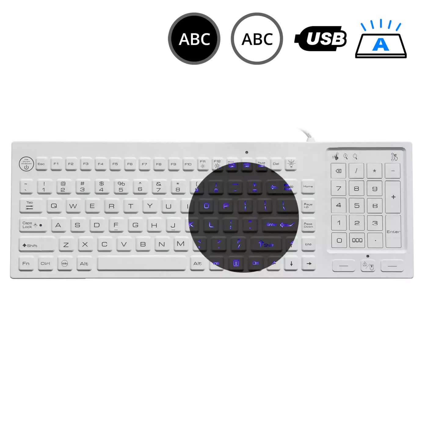 • umývateľná silikónová klávesnica s podsvietením