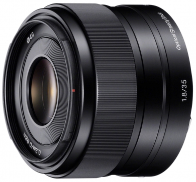 Objektív s pevnou ohniskovou vzdialenosťou 35 mm, svetelnú clonou F1, 8 a optickým stabilizátorom obrazu SteadyShot