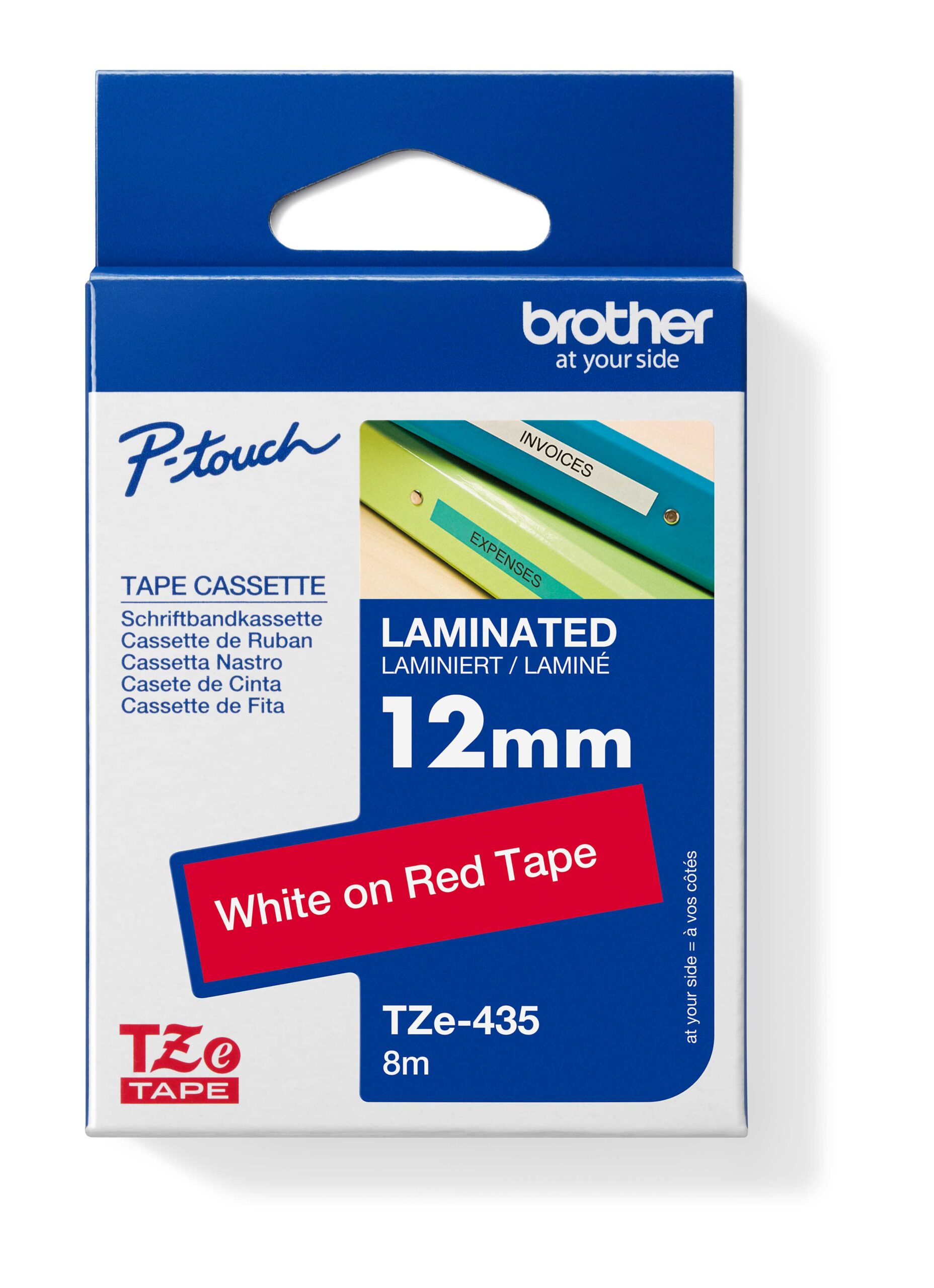 Originálna kazeta s páskou Brother TZe-435 – biela tlač na červené, šírka 12 mm Originálna kazeta s laminovanou páskou TZe-435 kompatibilná so širokým radom tlačiarní Brother P-touch je obzvlášť všestranná vďaka svojej ľahko čitateľnej bielej a červenej farbe – ideálna pre domácnosť, kancelária a ďalšie pracoviská. Vlastnosti: *Šírka 12 mm, dĺžka 8 m *Vysoko kvalitná originálna kazeta Brother *Garancia trvanlivosti, ľahká čitateľnosť štítkov