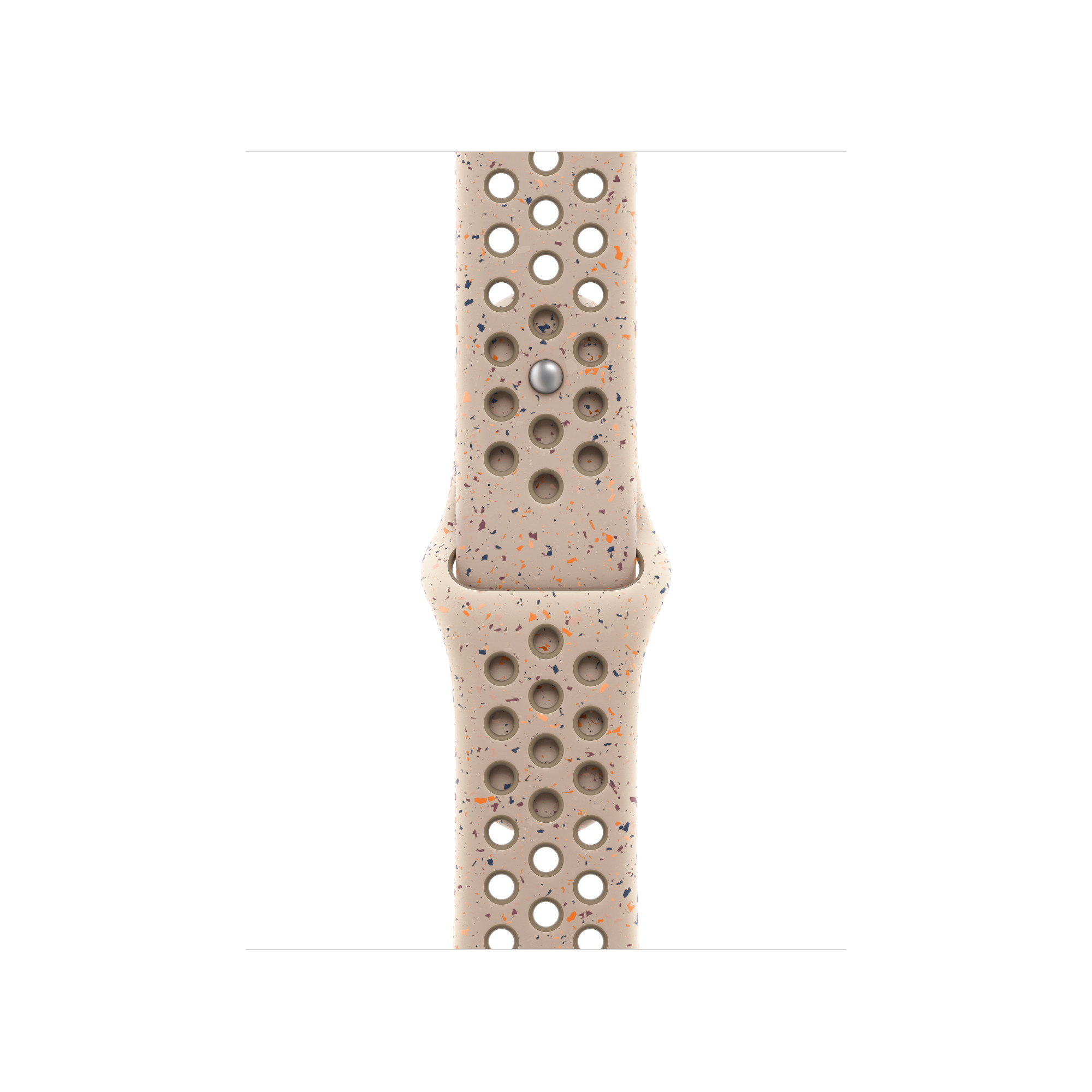 Tento športový remienok Nike má vylisované otvory pre väčšiu vzdušnosť, je odolný, pevný a pritom krásne poddajný. Obsahuje farebné vločky vytvárajúce náhodné vzory, takže každý remienok je originál. Jeho hladký, hutný materiál sa elegantne ovinie okolo zápästia a príjemne sedí. A novo sa zapína na hliníkový kolíček s matným povrchom.