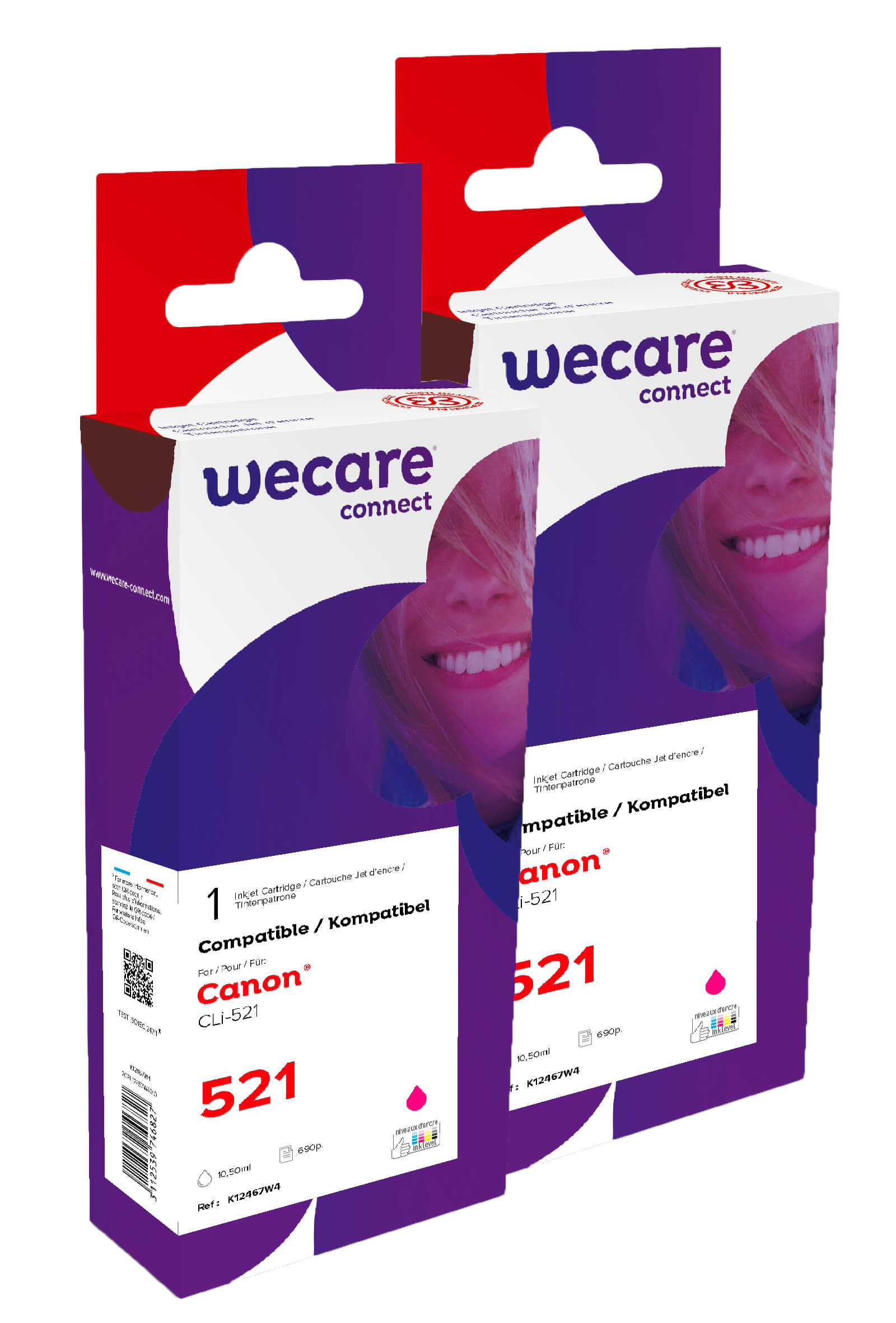 WECARE ARMOR sada ink kompatibilná s CANON CLI521M 2×10,5 ml, červená, CLI-521 M